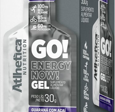 Atlhetica Nutrition GO! ENERGY NOW GEL (10 sachês de 30g) Guaraná com Açaí, Multicolorido